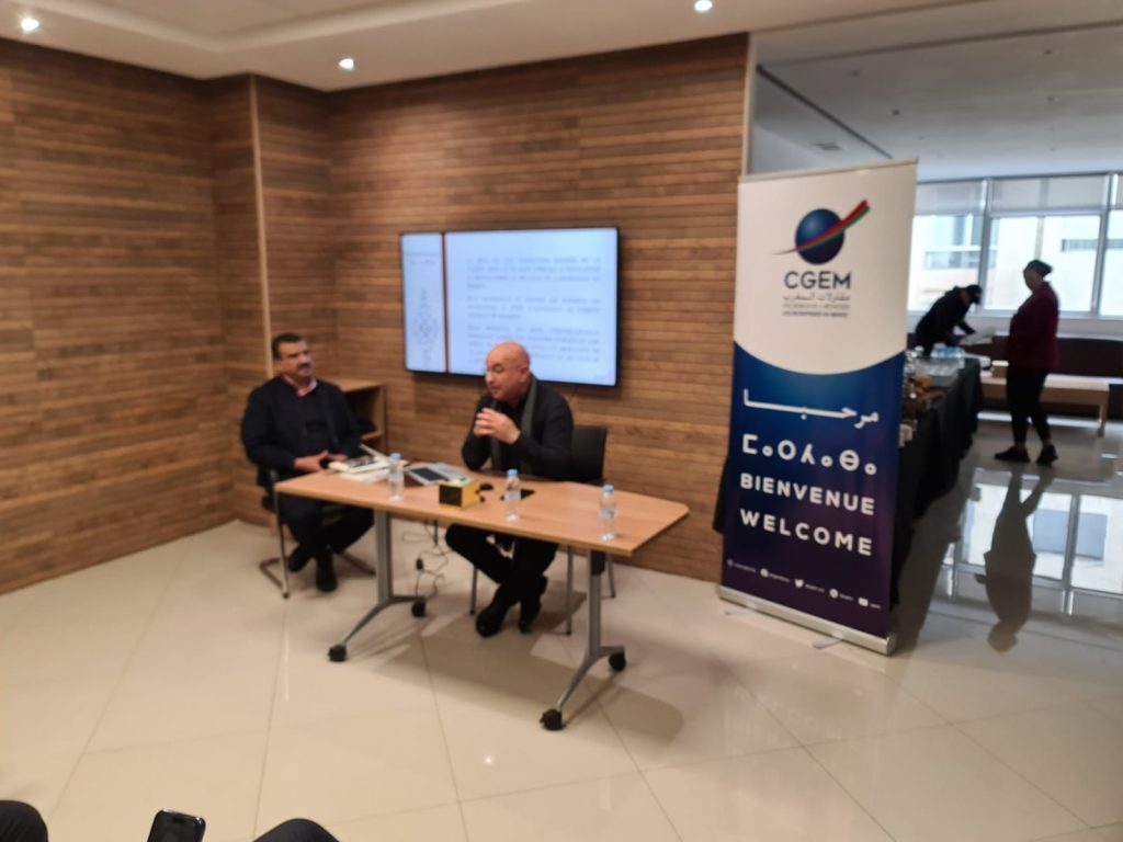 شارك السيد أحمد بكور رئيس غرفة الصناعة التقليدية طنجة تطوان الحسيمة في اللقاء التحسيسي المنظم من طرف الإتحاد العام لمقاولات المغرب بشراكة مع مؤسسة دار الصانع وتنسيق مع المديرية الجهوية للصناعة التقليدية والإقتصاد الإجتماعي والتضامني، حول عدد من البرامج لدعم تنافسية الفاعلين بقطاع الصناعة التقليدية، تم إطلاقها من طرف الحكومة لدعم تنافسية الصناع ومقاولات الصناعة التقليدية وتحفيز نمو القطاع، وتجويد تنافسيته وتوسيع نطاقه الدولي،كما حضر اللقاء السيد طارق العدناني مدير دار الصانع، والسيدة سعاد بلقايدي المديرة الإقليمية للصناعة التقليدية بتطوان والسيد نبيل بنتريعة رئيس مصلحة دعم حرف الصناعة التقليدية بالمديرية الجهوية للصناعة التقليدية بطنجة