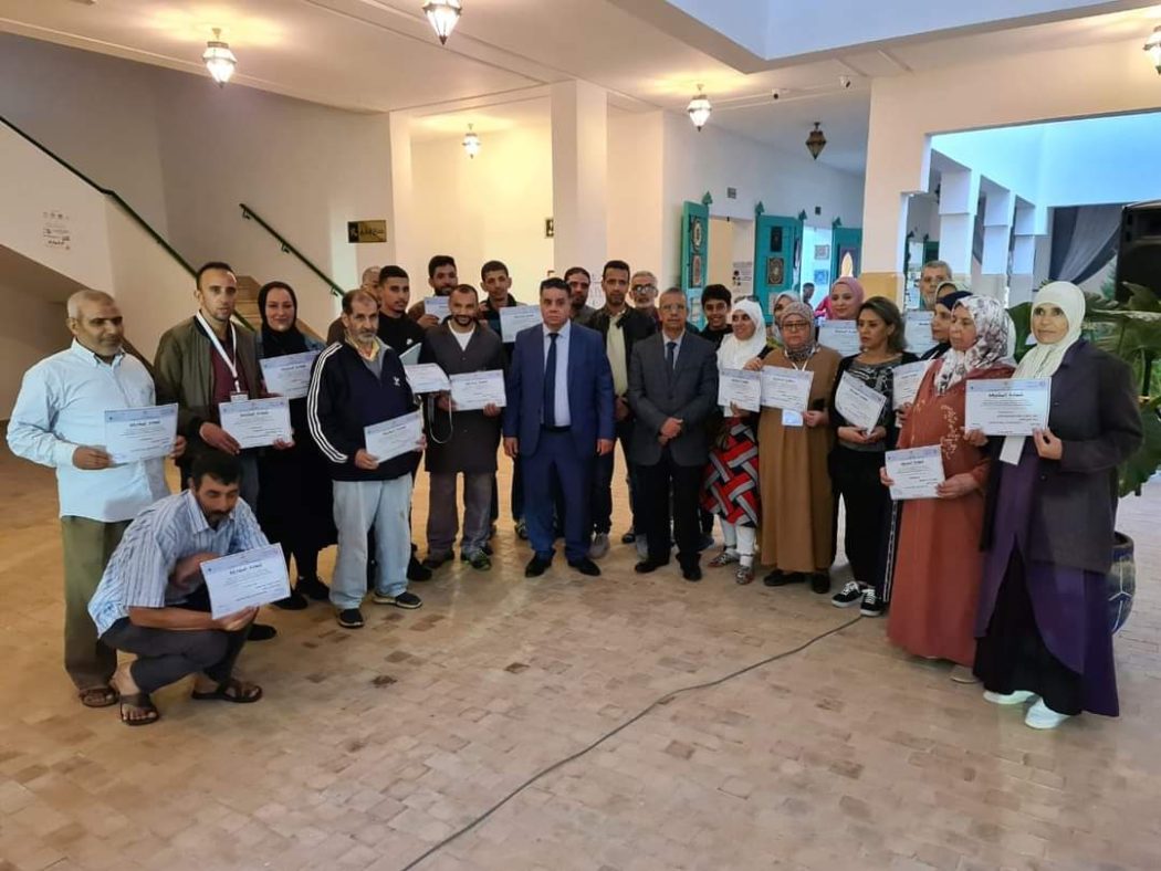 اختتمت مساء يومه الأحد 6 نونبر 2022 فعاليات معرض الصناعة التقليدية الذي انطلق منذ 28 أكتوبر 2022 بالمركب المندمج للصناعة التقليدية بمدينة أصيلة، وقد أشرف السيد أحمد بكور رئيس غرفة الصناعة التقليدية لجهة طنجة تطوان الحسيمة بمعية السيد محمد الناشط النائب السادس لرئيس الغرفة، والسيد خالد الدليمي المدير الجهوي للصناعة التقليدية والاقتصاد الاجتماعي والتضامني، والسيد نبيل بنتريعة رئيس مصلحة دعم حرف الصناعة التقليدية بالمديرية الجهوية والسيد عبد الحميد قرير رئيس مصلحة الإنعاش وتتبع البنيات التحتية والتكوين بالغرفة على توزيع شواهد المشاركة على الصناع التقليديين وممثلي الوحدات الانتاجية المشاركة في المعرض.